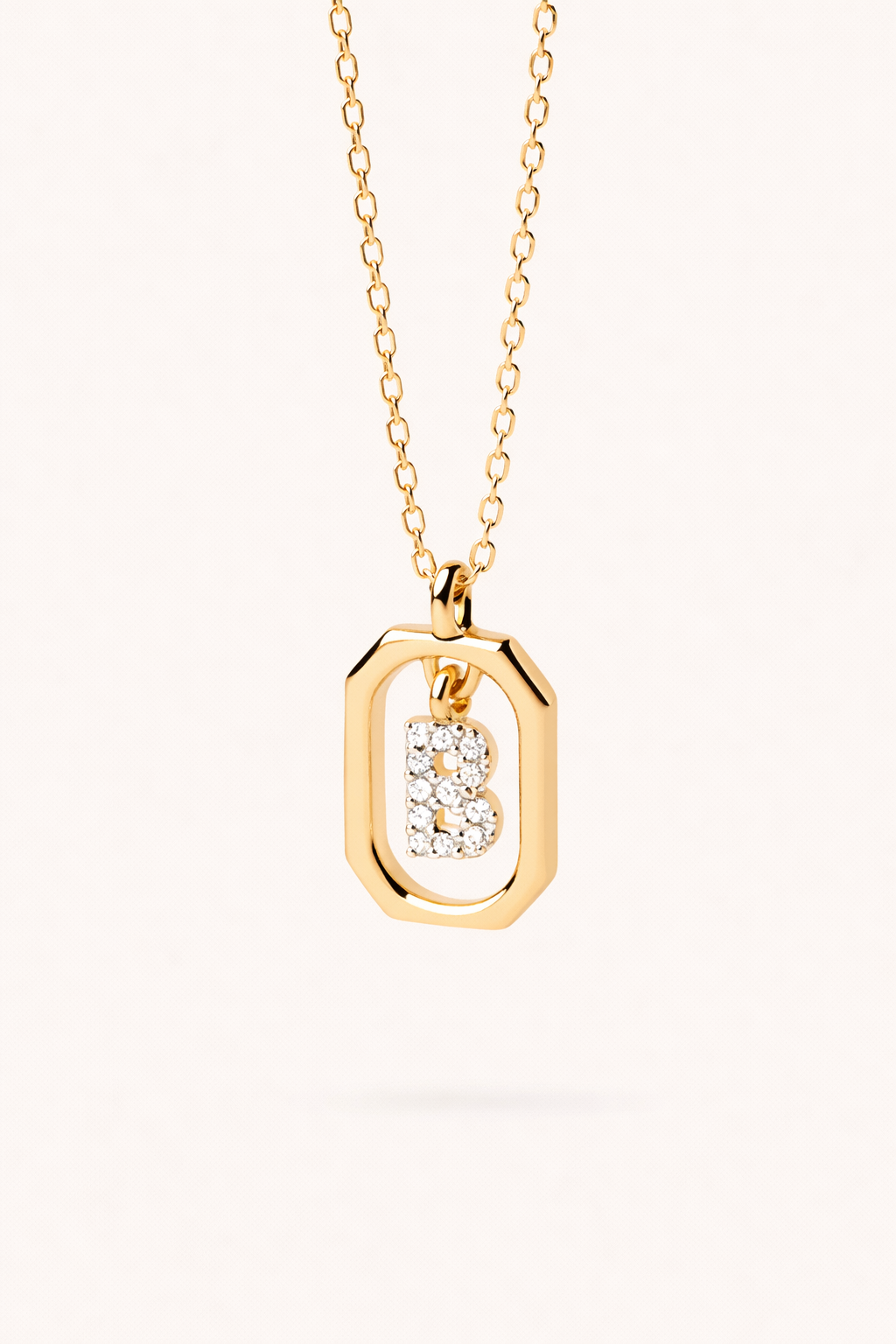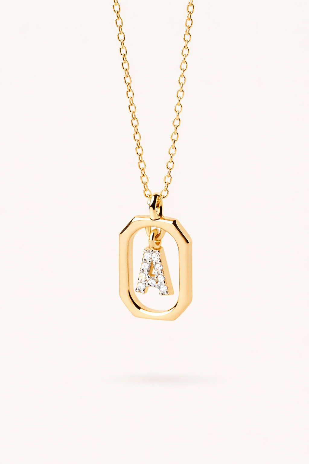 Este collar de inicial es una pieza delicada, pensada para acompañarte siempre. Su diseño ovalado en acabado dorado enmarca la letra —cuidadosamente engastada con circonitas— creando un brillo sutil, elegante y muy actual.