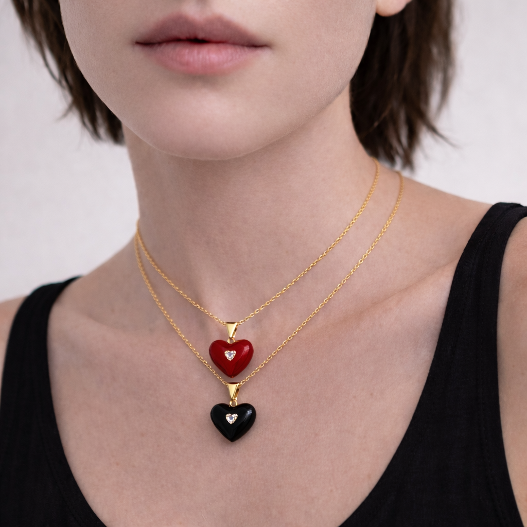 Un nuevo lenguaje para un clásico eterno. El collar Corazón Rojo redefine la simbología del amor bajo una lente contemporánea. Con un diseño 'bold' de acabado esmaltado en rojo vibrante y un núcleo de luz sutil, esta pieza está pensada para la mujer que escribe sus propias reglas. La sofisticación no es silenciosa; es una declaración de intenciones en tu escote.