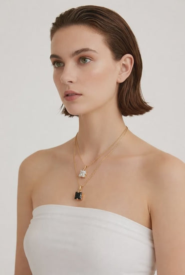 Colgante cuadrado de circonita, disponible en blanco y negro.
