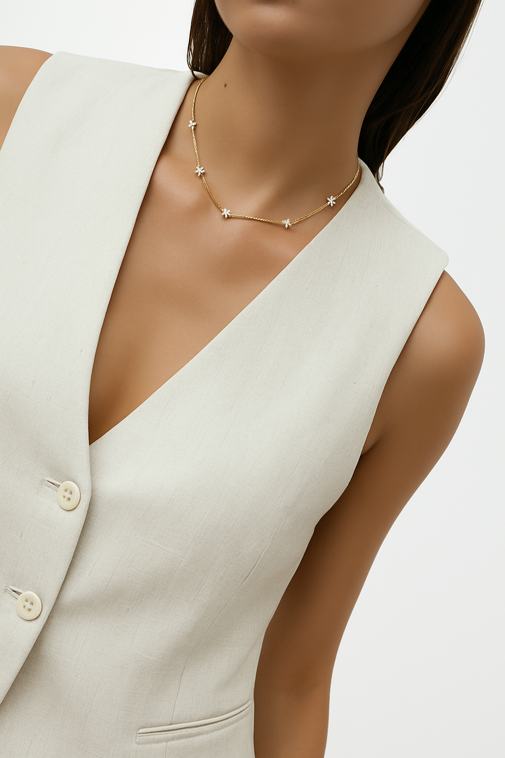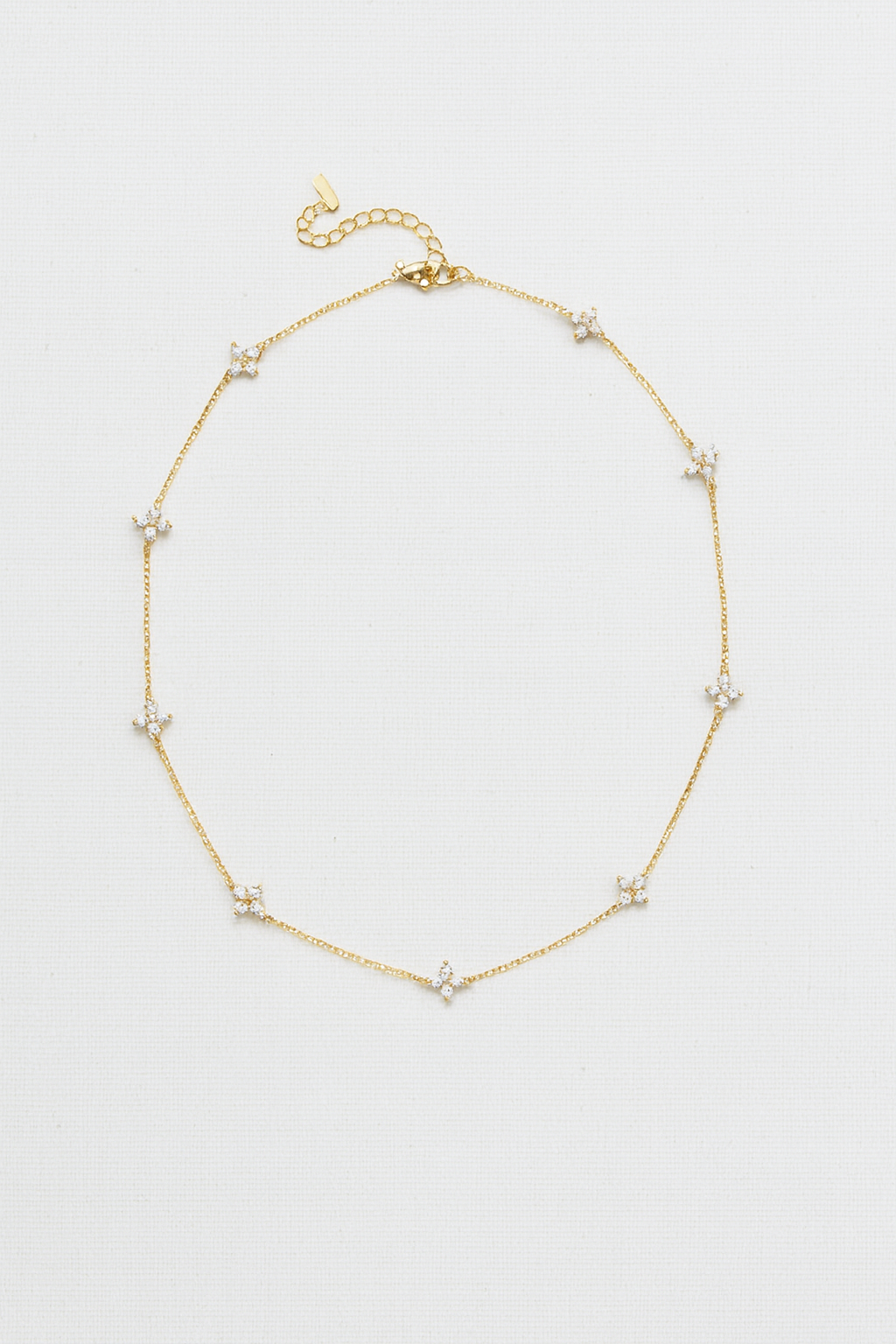 Una gargantilla fina y luminosa, decorada con pequeñas gemas de brillantes que aportan brillo de forma discreta y elegante. Diseñada para llevar a ras de cuello, es perfecta para el día a día o para combinar con otros collares.Atemporal y ligera, de esas joyas que acompañan sin imponerse y elevan cualquier look con sutileza.