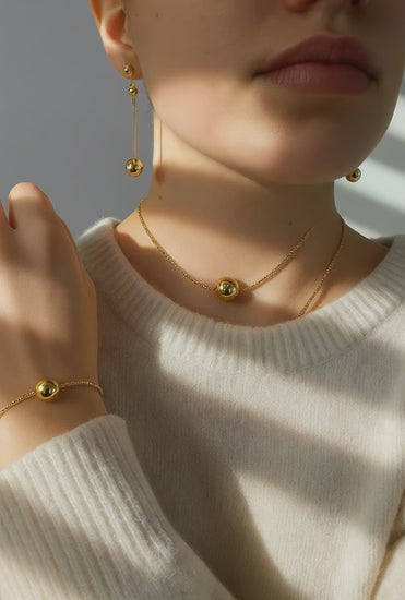 Pendientes largos y estilizados con esfera pulida en el extremo, diseñados para aportar movimiento y luz de forma elegante. Su silueta fina y equilibrada los convierte en una pieza versátil, perfecta tanto para el día como para ocasiones especiales.