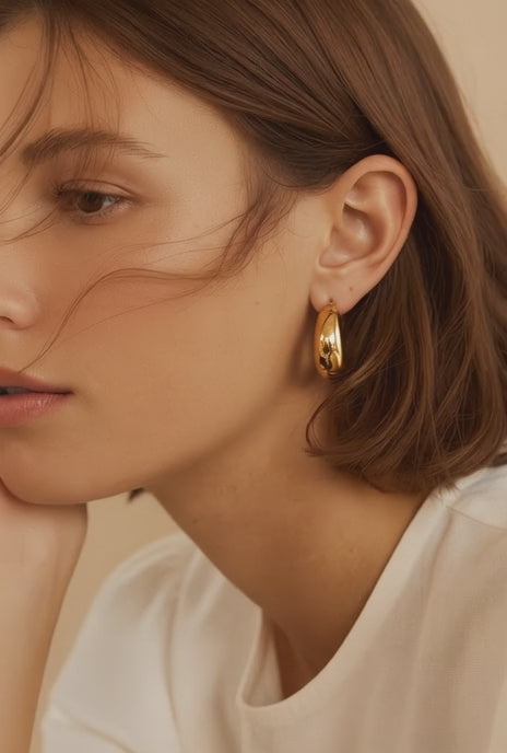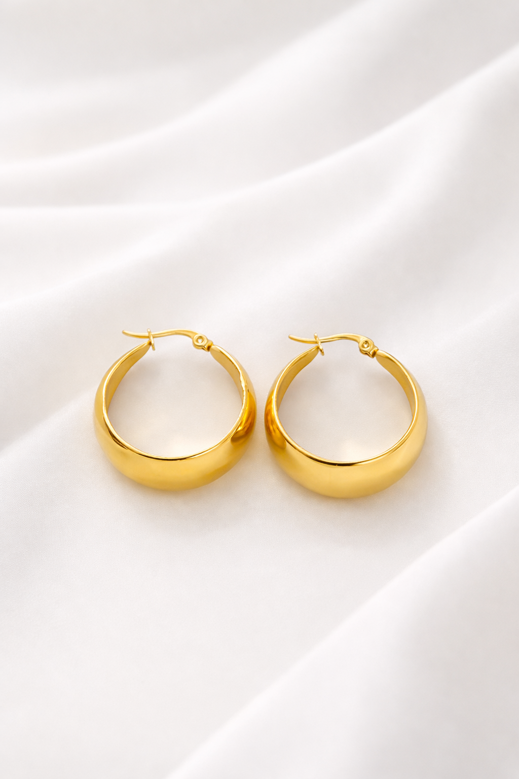 Pendientes Aros Esfera Ancha— Plata de ley bañada en oro 18k. Acabado pulido.